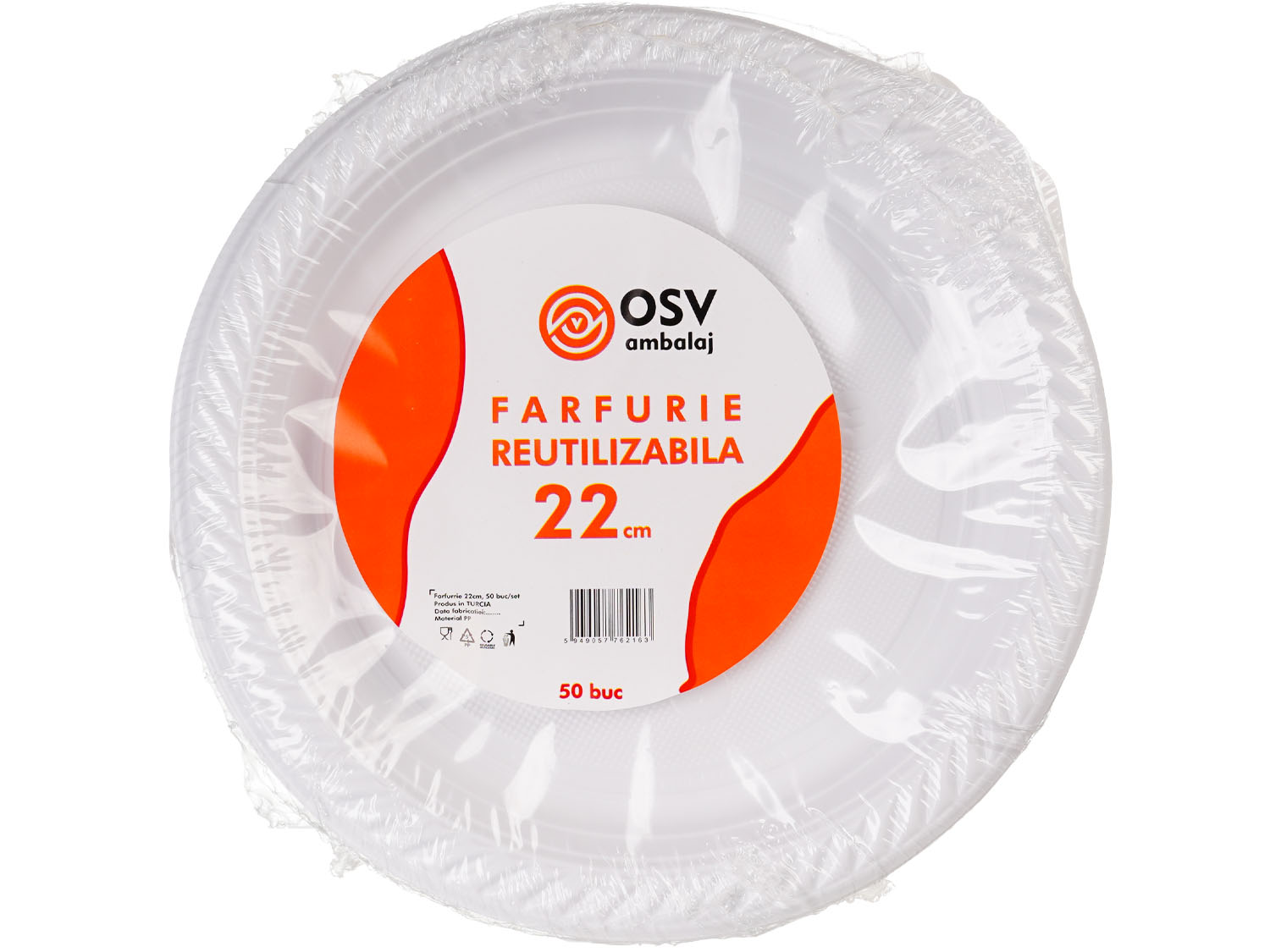 Farfuria reutilizabilă de 22 cm este soluția practică și ecologică pentru servirea mesei, atât acasă, cât și în deplasare. Cu un design simplu și funcțional, este ideală pentru feluri principale, salate sau gustări.