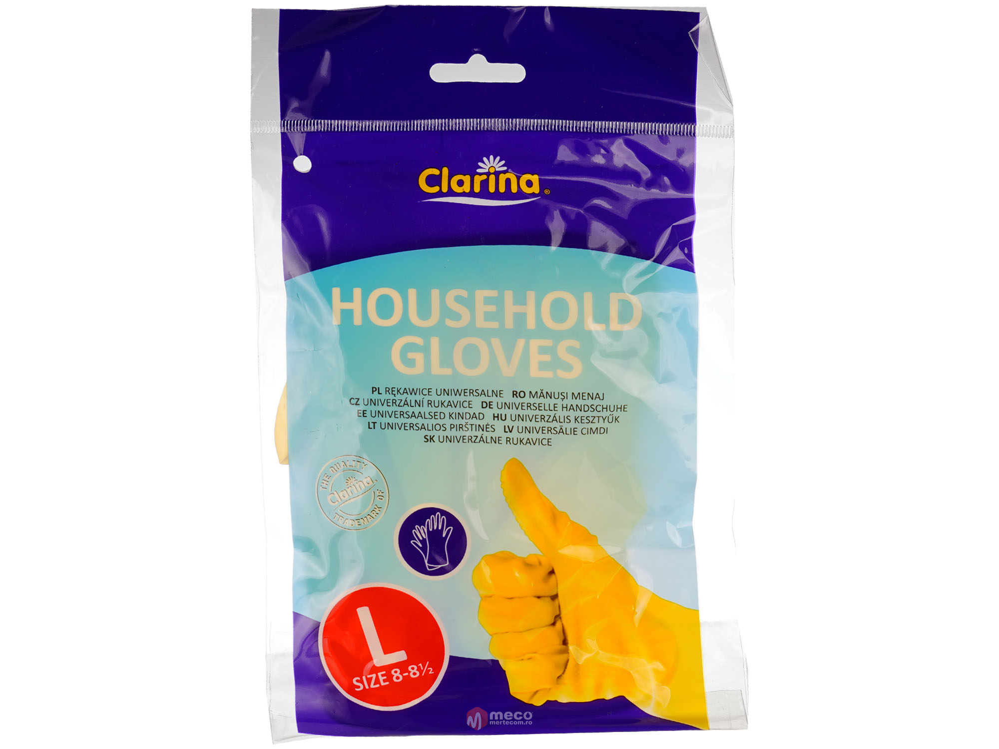Mănușile de menaj Clarina sunt confecționate din cauciuc de înaltă calitate și sunt ideale pentru a proteja mâinile în timpul treburilor casnice.