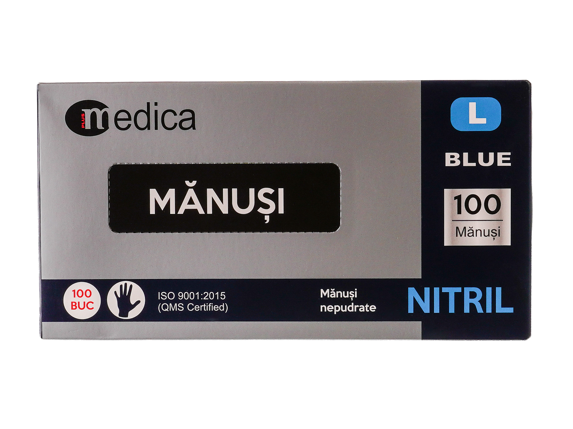 Manusi nepudrate nitril albastre MEDICA (100buc/cutie) marime L