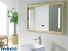 Oglindă cu iluminare LED și dezaburire, prevăzută cu afișaj temperatură și sistem touch, acum disponibilă pentru comandă rapidă.