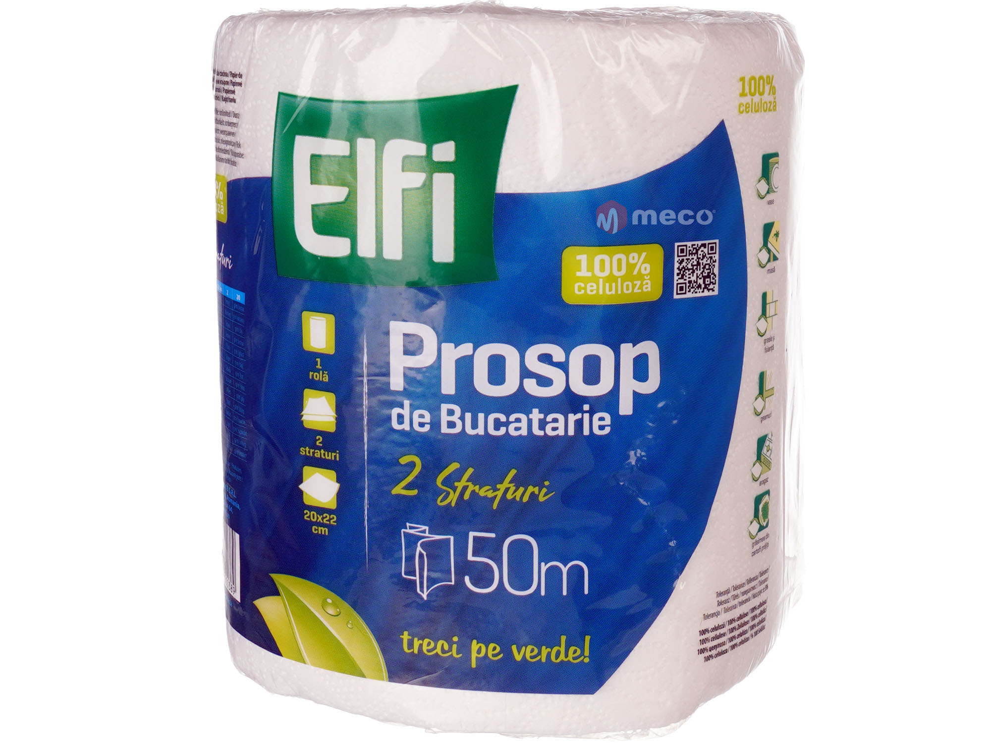 Prosop de bucatarie Elfi 2straturi 227foi 50metri, celuloza 100%, 227foi, absorbant, dimensiune: 20x22 cm