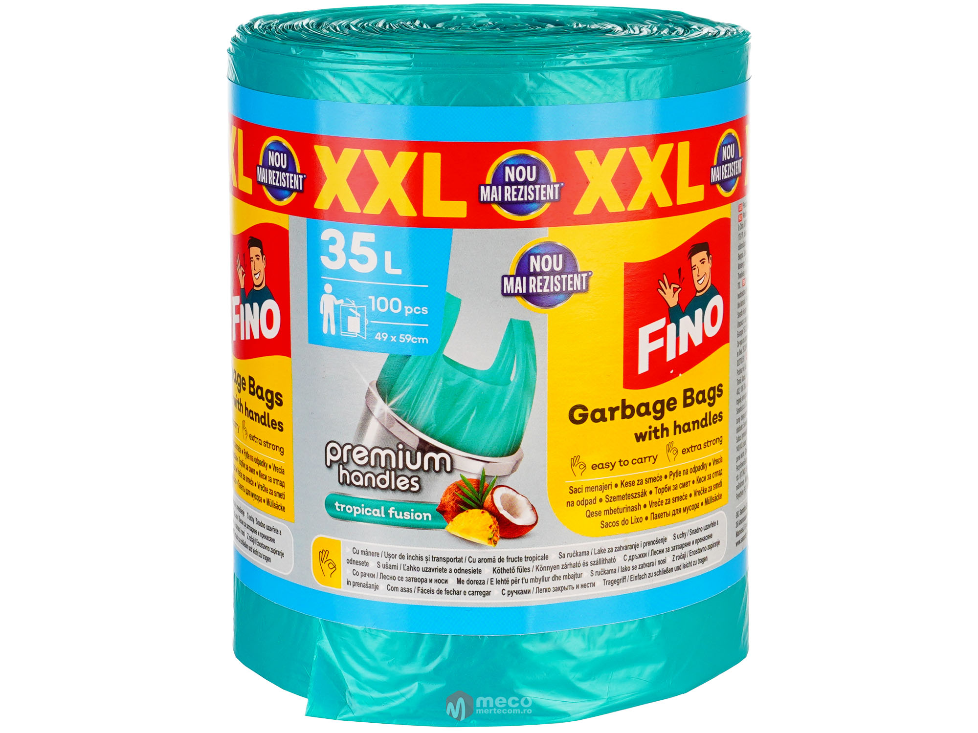 Saci menajeri cu maner Fino 35 litri 100 bucati, dimensiune: 49x60 cm, sistem inchidere tip maner
