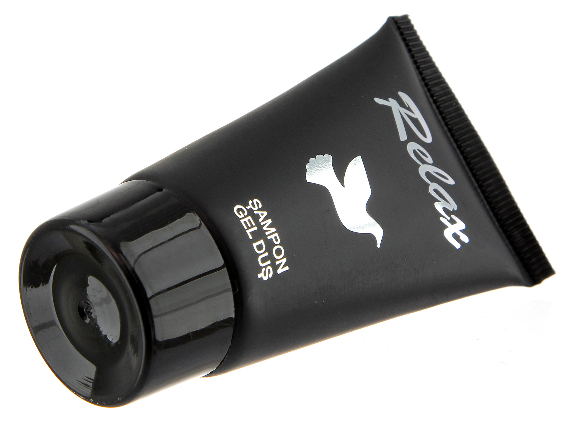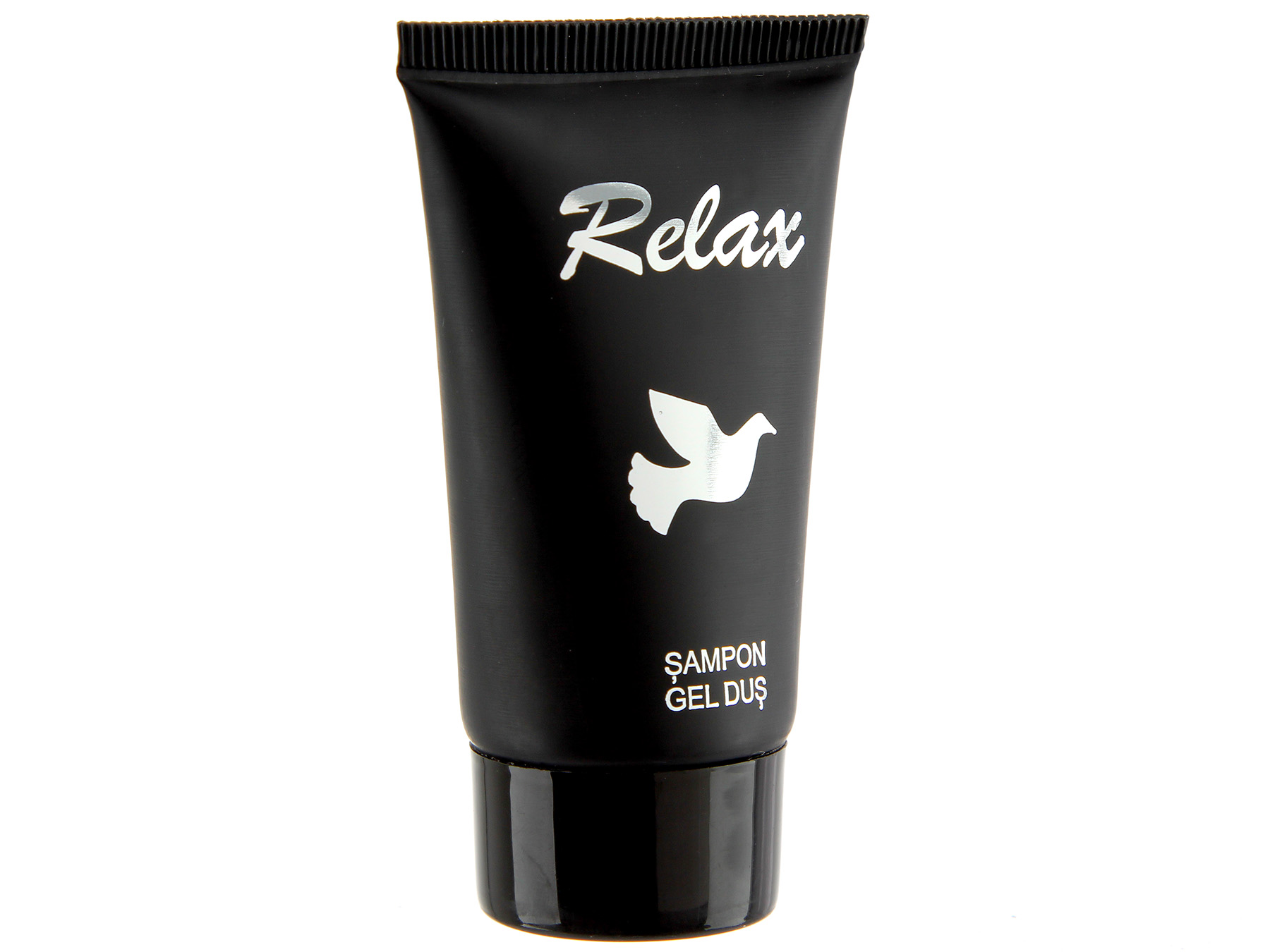 Sampon gel dus hotelier Relax citrus black , aroma citrus fresh , tub de 30 ml , culoare neagra cu scris elegant cromat, produs vegetal , delicat cu parul si pielea, 300 bucati pe bax
