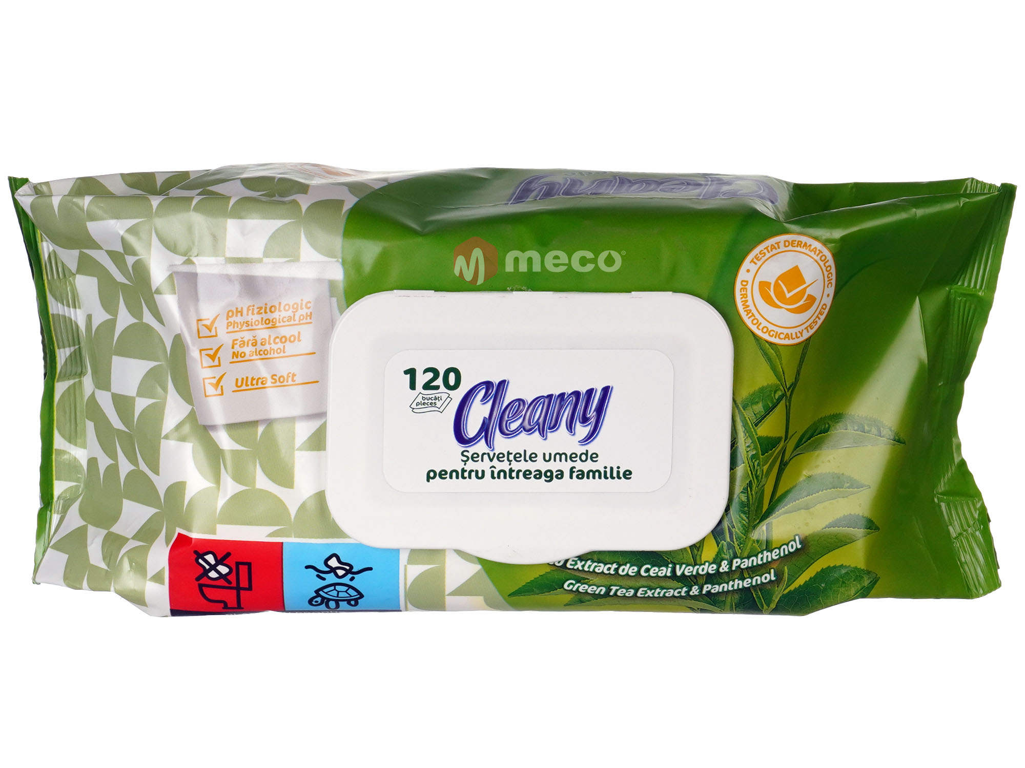 Servetele umede cu capac Cleany 120buc Ceai verde si Panthenol