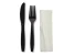 Setul catering negru include furculita, cutit si servetel fiind destinate evenimentelor cu servirea mâncării în regim de catering, sau în orice alte unități din aria HoReCa