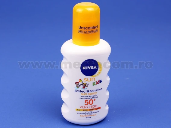 Spray de protectie solara pentru copii FPS50+ Nivea 200ml, formula cu protectie ridicata UVA reduce riscul aparitiei alergiilor provocate de soare