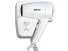 Uscător păr hotelier cu priză încorporată HD 120B, de putere mare, realizat din ABS rezistent. Dispune de reglaj temperatură și pornire la apăsarea unui buton.
